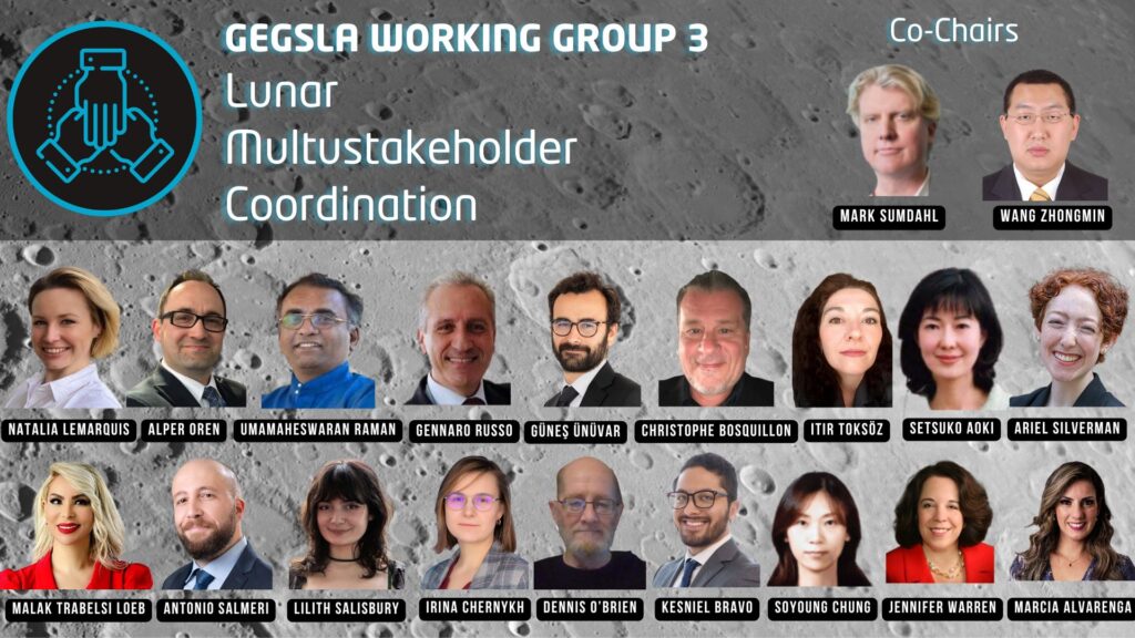The Lunar Multi-Stakeholder Coordination Working Group (WG 3) operates within the GEGSLA Operational Phase and plays a crucial role in facilitating collaboration and coordination among diverse stakeholders to ensure peaceful, safe, and sustainable lunar activities. WG 3’s key objective is to enhance coordination among lunar stakeholders to mitigate risks in future lunar missions and promote a harmonious lunar exploration and settlement. WG 3 aims to create the International Committee on Lunar Operations (ICLO), an affiliated body of the United Nations, to coordinate states and other lunar stakeholders at operational and policy levels. WG3’s work plan includes regular meetings to develop a proposal for ICLO creation, which will be presented in the final report submitted to the Plenary Meeting of GEGSLA and to COPUOS by the Moon Village Association (MVA) as a permanent observer.